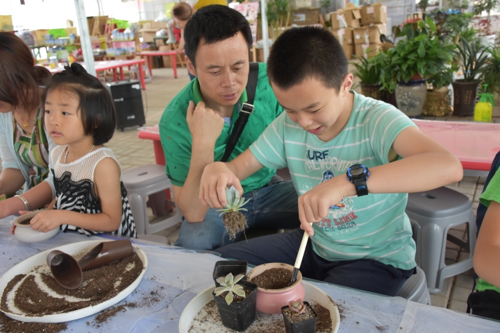 “老师,这个熊童子是因为长得像熊爪,才叫这个名字吗?”“老师,为什么这个植物叫蓝精灵?”……在稚嫩且充满求知热情的提问中,小朋友们参观了多肉种植基地,学习了多肉植物的品种和分类以及种植方法。在动手环节当中,小朋友和父母一组在老师的引导下共同种植了可爱的多肉植物盆栽,场面十分温馨。