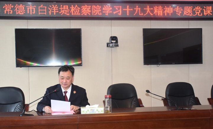 常德市白洋堤检察院举办“学习贯彻党的十九大精神”专题党课 发布时间:2018-03-26 信息来源:常德市白洋堤检察院 点击次数: 次 【字体:小 大】 3月23日,常德市白洋堤地区人民检察院召开学习贯彻党的十九大精神专题党课活动。支部书记杨文武作了主题宣讲,全院党员、群众参加了学习。在讲课过程中,杨文武结合自身的学习理解,引用典型事例、大数据,进行多方面、多层次详细解读,从不同角度、不同侧重点,深入浅出地阐述了党的十九大精神的丰富内涵。 现场照片一课后,全院党员、群众纷纷表示,将深刻领会党的十九大精神,用习近平新时代中国特色社会主义思想武装头脑、指导实践,为检察事业的发展做出自己的贡献。 现场照片二 【打印正文】 分享到: